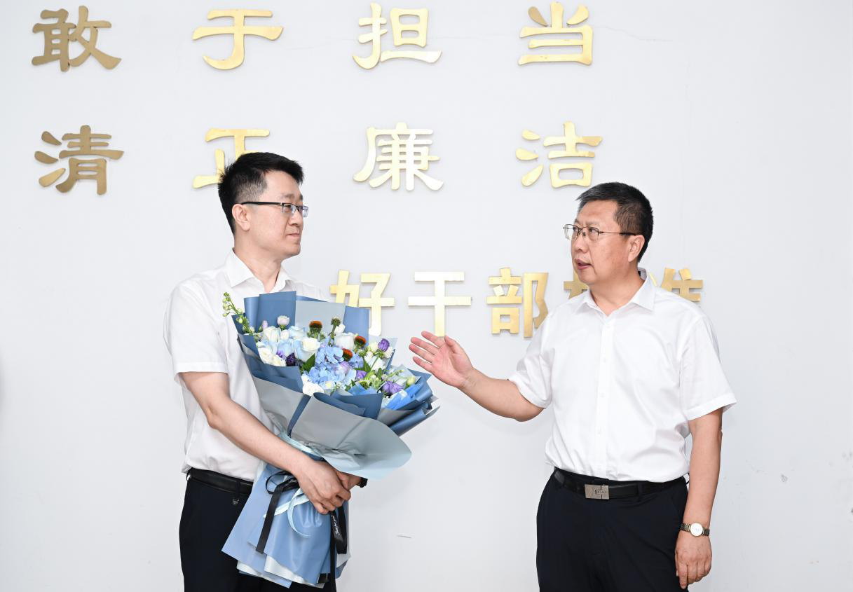 7月14日,电子游戏平台门户网站 在厅机关举行援藏干部欢送仪式,为即将奔赴西藏自治区那曲市开展工作的谭鹏同志送行。电子游戏平台门户网站 党组书记王学来出席仪式并讲话,厅长蔡睿及厅领导班子成员、厅机关各处室负责同志、各处室代表参加欢送仪式。